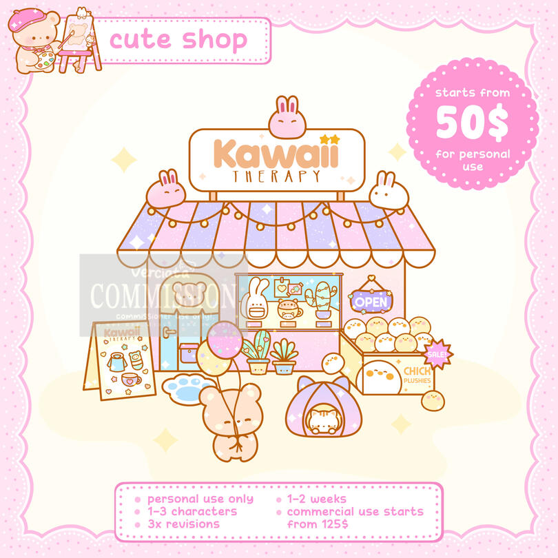 Commercial commission : 50% deposit before sketch (non-refundable), 50% after sketch approval